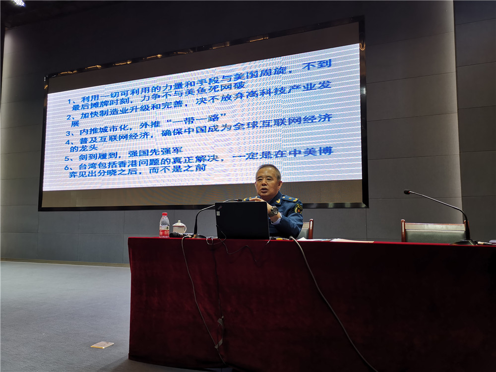 15日下午,喬良將軍在公司一樓多功能廳做了《從百年大變局看中美貿(mào)易戰(zhàn)》專題講座,公司中高層領(lǐng)導(dǎo)及管理人員、部分員工骨干300余人聆聽了報(bào)告。喬良將軍從中美貿(mào)易戰(zhàn)的深層次背景與本質(zhì)、特朗普為何要發(fā)動(dòng)貿(mào)易戰(zhàn)、特朗普面對(duì)的悖論、中國的對(duì)策與路徑四個(gè)方面進(jìn)行了鞭辟入里、深入淺出的精彩講授。通過對(duì)中美貿(mào)易戰(zhàn)的熱點(diǎn)分析中,使大家對(duì)中國改革開放40年的偉大成就、中華民族的偉大復(fù)興及復(fù)興之路的戰(zhàn)略選擇有了全面和深入的理解。一方面,提升了全員的民族自豪感和對(duì)中華民族偉大復(fù)興的堅(jiān)定信念;另一方面,堅(jiān)定了公司開展民參軍業(yè)務(wù),順應(yīng)中國發(fā)展需求,實(shí)現(xiàn)軍工報(bào)國的決心。