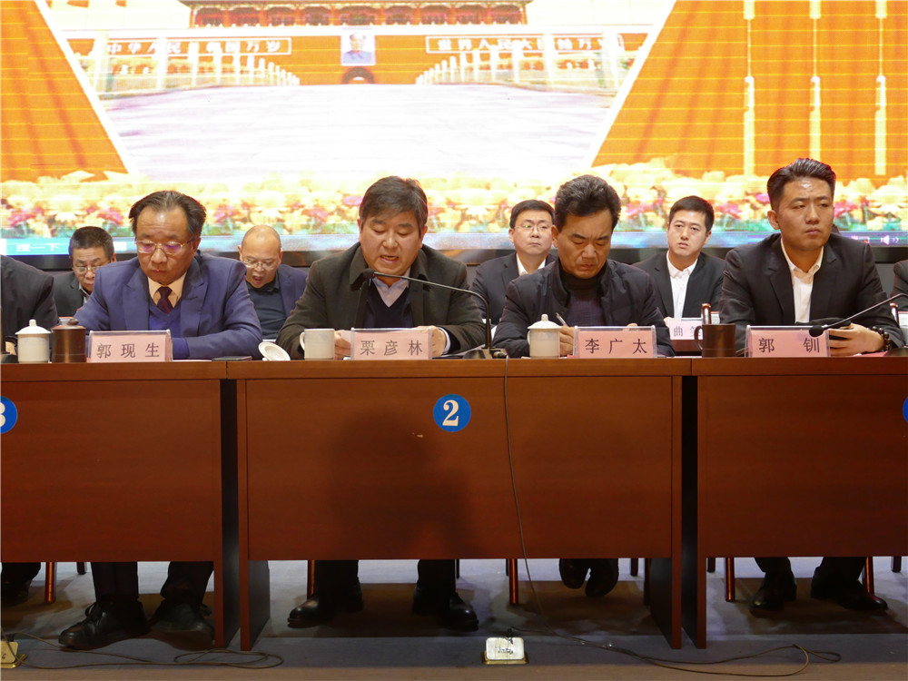 會(huì)議在雄壯的國(guó)歌聲中拉開(kāi)序幕。公司董事、總經(jīng)理郭釧作了題為《求生存,謀發(fā)展,砥礪奮進(jìn)》的年度工作報(bào)告。報(bào)告全 面回顧總結(jié)了2019年度的工作和存在的不足,并明確了2020年公司經(jīng)營(yíng)目標(biāo)和發(fā)展方向。郭釧總經(jīng)理在報(bào)告中特別提到在2019年與公司同舟共濟(jì),共渡難關(guān)中涌現(xiàn)出的不畏艱難、敢于擔(dān)當(dāng)和奉獻(xiàn)的模范人物,對(duì)他們表示衷心的感謝。