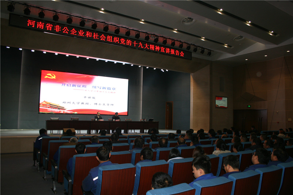 根據河南省委宣傳部、省委組織部安排部署,省非公企業和社會組織黨的十九大精神宣講報告會于12月11日下午在林州重機多功能廳舉行。省十九大精神宣講團成員、鄭州大學教授、博士生導師辛世俊作宣講報告,辛教授從八個方面對十九大報告深入淺出,通俗易懂闡述了報告精神實質和深刻內涵。安陽市委宣傳部、市委組織部,林州市委宣傳部有關領導參加并聆聽了宣講報告。公司黨委書記郭現生及中高層領導,全體黨員及入黨積極分子,機關各部室管理人員及車間管理人員共300余人聽取宣講報告。會后,公司黨委書記、董事長郭現生接受了安陽電視臺的采訪。