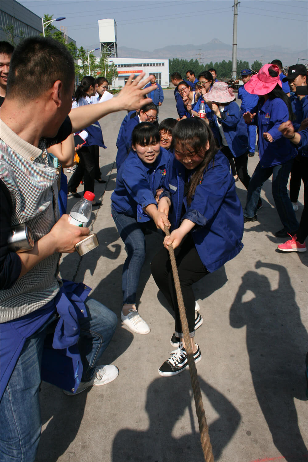 開幕式結束后,籃球、短跑、接力、拔河、跳繩、踢毽、乒乓球、羽毛球、象棋等13個項目在指定的比賽場地同時舉行。籃球場上身穿藍球衣朗坤公司隊和紅色球衣生產(chǎn)系統(tǒng)隊的比賽精彩紛呈,扣人心弦。隨著"砰"一聲,發(fā)令槍響,接力運動員疾步如飛,向終點沖刺。觀眾“加油、加油”的助威吶喊聲,將拔河比賽推向高潮。